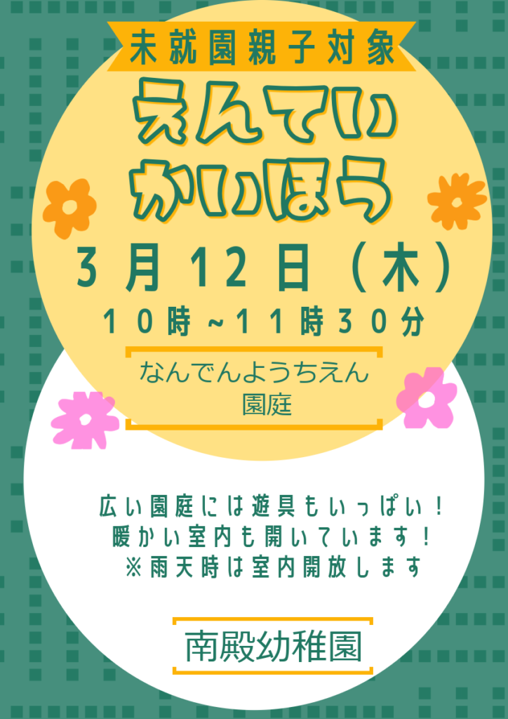 3月12日(木)未就園児親子園庭開放のお知らせ